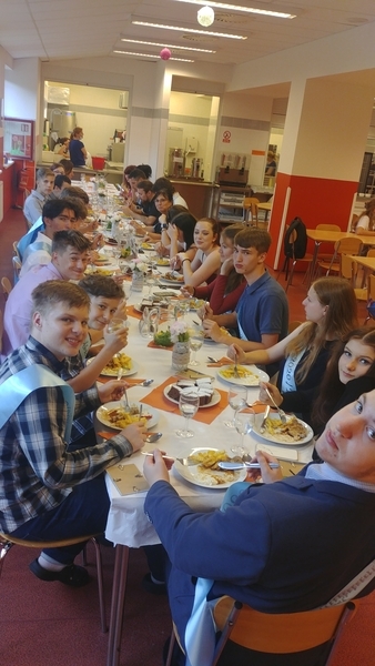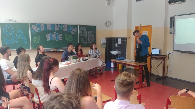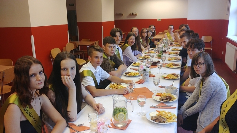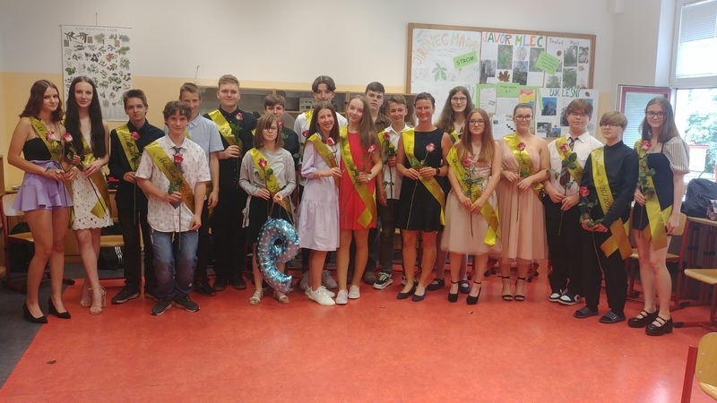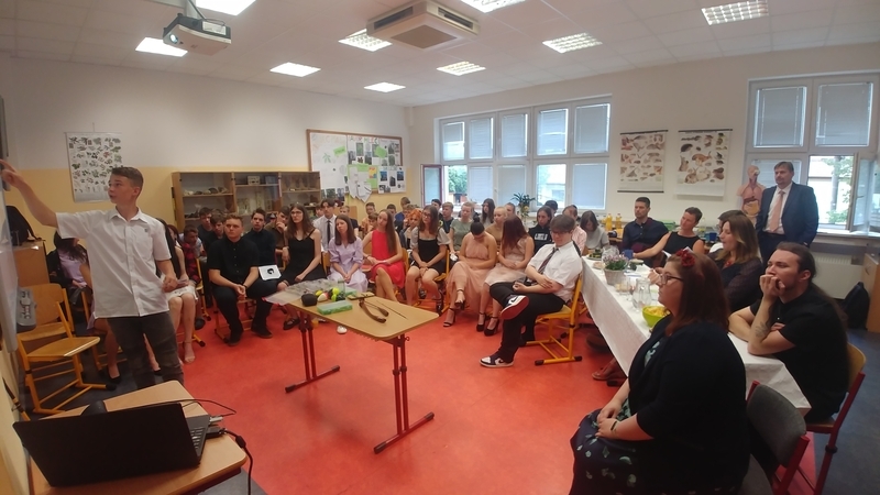 Na konci června pak všichni deváťáci své práce obhájili před odbornou porotou. I v tomto roce byly některé práce a jejich obhajoby na vynikající úrovni. V závěru pak byli všichni žáci obdarováni památeční šerpou se jmény svých spolužáků a třídního učitele, růží a společně s jejich vyučujícími pozváni na slavnostní oběd do školní jídelny (tímto ŠJ velmi děkujeme za krásný a chutný zážitek).