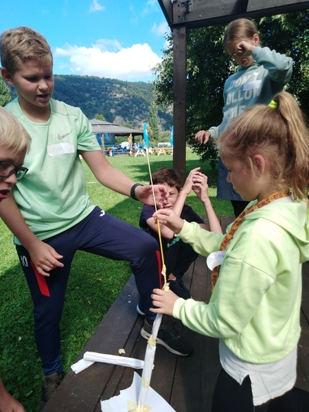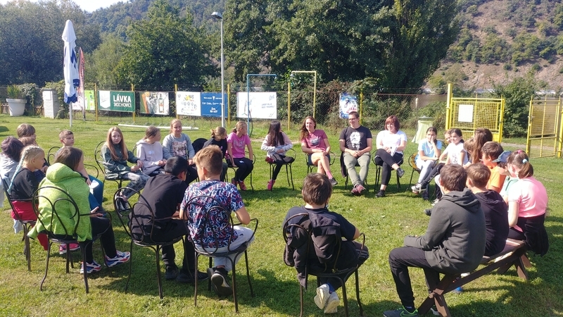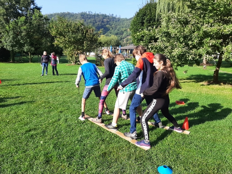 Hned ve čtvrtek 2. září se třídy 6. A , 6. B a 7. A vydaly do areálu Lávka na adaptační den, při kterém se měly zase o trochu lépe poznat a blíže se seznámit nejen s novými spolužáky, ale také s novými třídními učiteli, jejich zástupci a asistentkami pedagoga. Důraz byl kladen na podpoření spolupráce ve třídě a stmelení třídního kolektivu. Aktivity vedly mj. k posílení vzájemné důvěry (celá třída musela např. udržet na napnutém laně jednoho ze spolužáků), spolupráci (např. souhra a organizace při „jednolyžích“), poznávání spolužáků a učitelů atd. Na konci kurzu si žáci vzájemně předali náramky přátelství se slovy chvály. Program trval, s přestávkou na oběd, celý den a dle reakcí dětí se velmi vydařil.