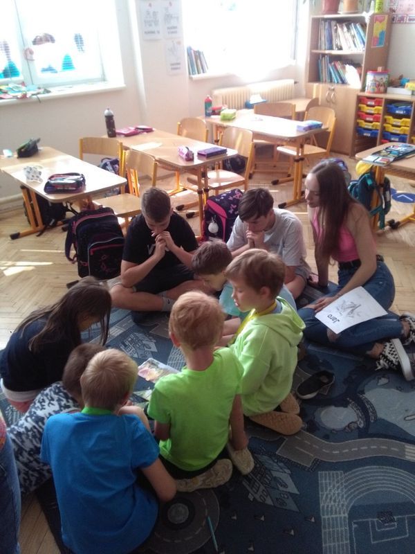 Třída 9.B pojala společnou hodinu tematicky v duchu čtyř ročních období. Žáčci z 1.A na základě básniček hádali, o které roční období se jedná, a následně se všichni podepisovali na plakáty k ročnímu období, v němž se narodili.
