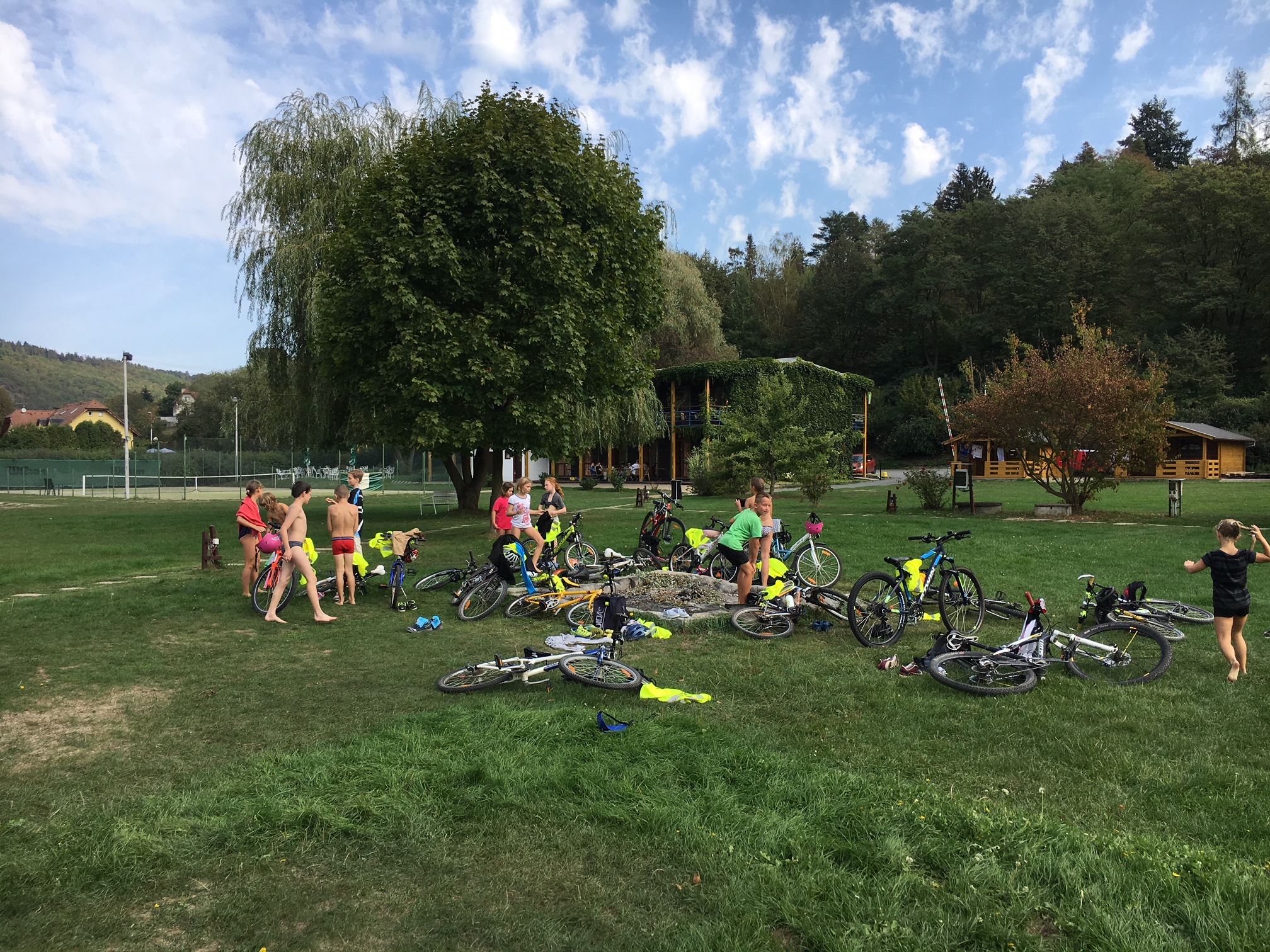 I čtvrtá třída vyrazila na cyklovýlet, tentokrát na Jarov a na Lávku do Skochovic, počasí nám přálo, míčové hry i koupačka byla (19. září neuvěřitelné :-). Na závěr drobný defekt u jednoho kola, ale při počtu dětí to byl úspěch. Děkuji maminkám Katce, Míše a Monice za doprovod a pomoc. DP