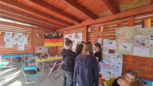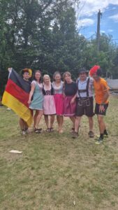 Středa 19.6. patřila v naší škole němčině! „Den s němčinou“ se konal za krásného počasí na zahradě školy a zúčastnily se děti, které se učí německý jazyk, tzn. žáci 7., 8. a 9. ročníků. Kromě prezentace svých projektů, kvízové stezky a sportovních aktivit v duchu aktuálně probíhajícího fotbalového Eura v Německu měly děti možnost ochutnat pravou bavorskou klobásu a další německé speciality.