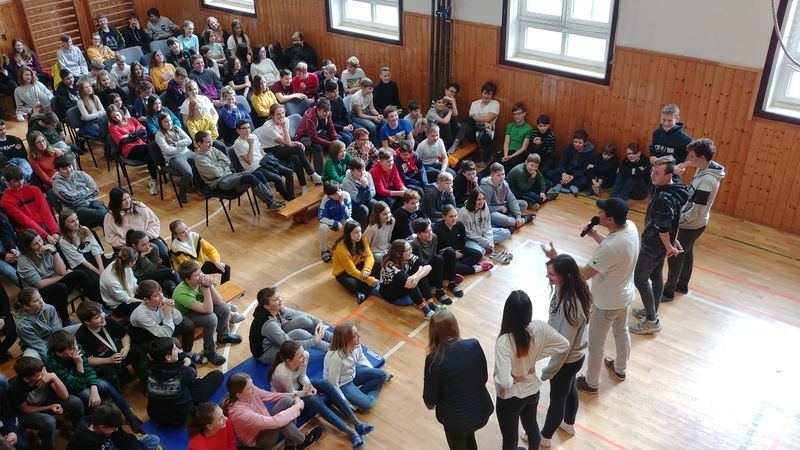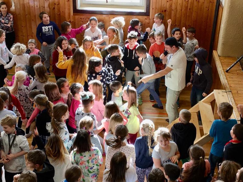 Kdesi za devatero horami a řekami – čti hodně daleko, leží pohádková země Morava a také město Zlín. Jednoho dne – v pondělí 24. února 2020, zavítala k nám z tohoto místa družina kouzelných hudebníků. Kouzelných? Jistě, přivezli úhledně zabalený program, v kterém se snoubilo umění hudební s darem vyprávěcím a také něčím, co možná v současné době působí dosti archaicky, naukou o slušném chování a zdravém sebevědomí. Děti prvního stupně si v záplavě barev a tónů naučili skládat písničkový hit a s dobrou náladou se protancovaly pondělním dopolednem. Děti na druhém stupni si mohly osvojit základy etikety. Nyní již naši chlapci vědí, kdo vchází do dveří první, jak zajistit bezpečí dívky a jak unést to, když ho odmítne při tanci. Dívky zase tuší, co mohou od slušných chlapců očekávat, že se na ně mohou spolehnout. V pondělí se u nás zpívalo, tančilo a vytvářelo krásno. Děkujeme za vše, co jsme mohli zažít.