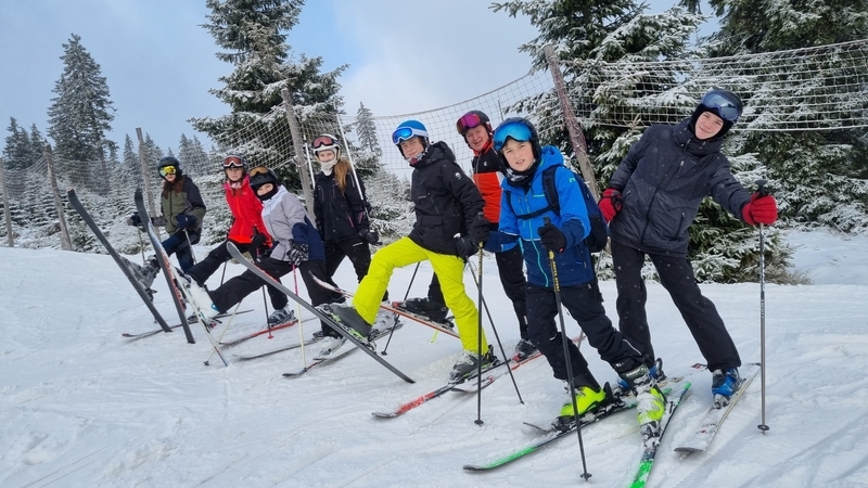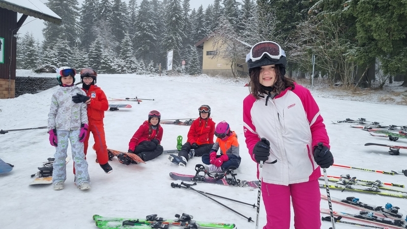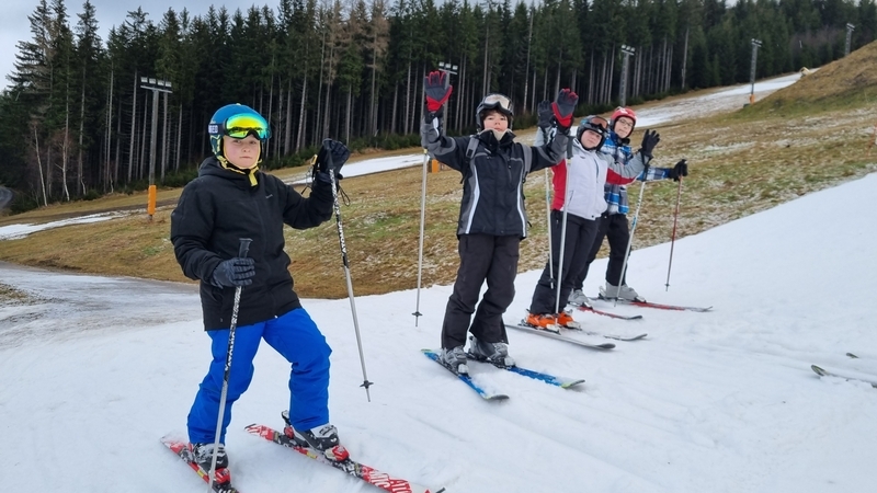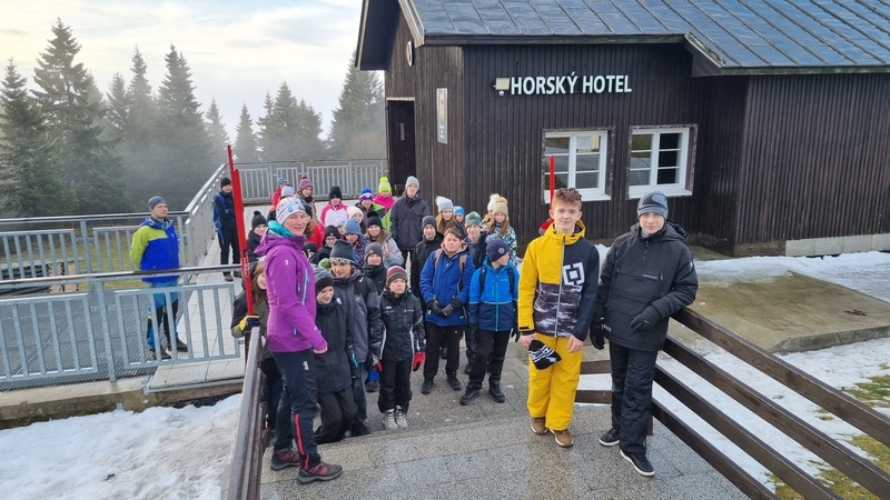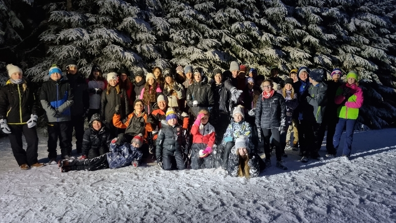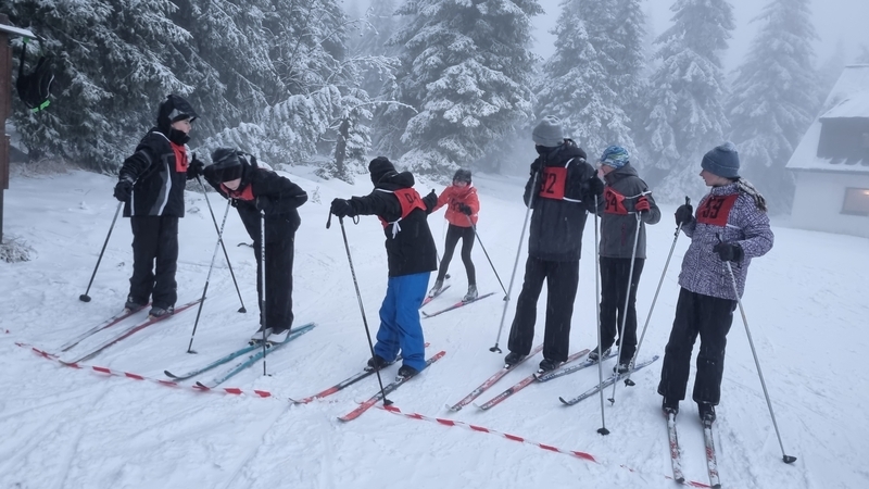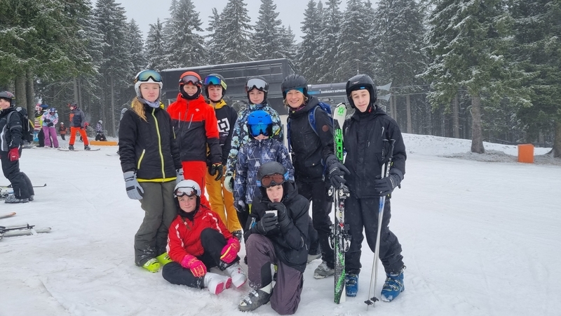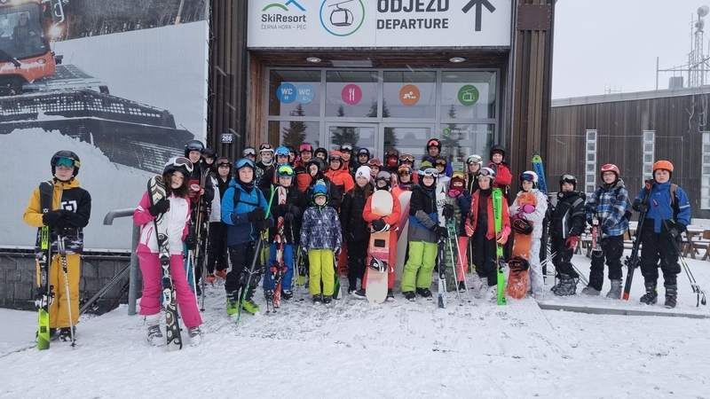 V sobotu 7. ledna jsme vyrazili s dalšími třiatřiceti sedmáky a několika učiteli na lyžařský kurz, poprvé do nové chaty na Černé hoře v Jánských Lázních. První den dopoledne jsme se šli projít a obhlédli jsme tak sněhovou situaci, která v den příjezdu nevypadala dobře. Po obědě už jsme ale nasadili běžky a na krátkém úseku na vrcholu Černé hory jsme poměřili síly s ledovým podkladem a svou kondičkou. Navečer nás ještě vyučující na přilehlé sjezdovce na zbytkách sněhu rozřadili do družstev podle našich sjezdařských dovedností. Družstev bylo pět: snowboardisté, lyžaři začátečníci, lyžařské družstvo – jedna, dva a tři. I v tento den byla večerka ve 22:00 hodin a před usnutím jsme si nepřáli nic jiného, než aby nám do rána nasněžilo. To se nám hned v pondělí ráno splnilo, a tak jsme hned po snídani lyžovali na jediné otevřené sjezdovce na kopci – sjezdovce Anděl. Odpoledne jsme vyrazili na běžky, kde pro nás byl připraven běžkařský víceboj. Každý večer jsme se po třídách střídali v organizaci večerního programu. V úterý a ve středu jsme vyjeli lyžovat skibusem do Pece pod Sněžkou, kde jsme si parádně užili ježdění na pěti sjezdovkách. Odpoledne začal padat sníh, a tak jsme v podvečer ještě stihli procházku s pořádnou koulovačkou „všichni proti všem“. Čtvrtek byl ve znamení běžek: všichni účastníci kurzu na běžkách dojeli až na Kolínskou boudu, kde jsme se mohli občerstvit a odpočinout si, a ve dvou skupinách (dle výkonnosti) jsme se vraceli zpět na chatu. Celkem jsme urazili kolem 10 km. Po obědě jsme měli běžkařské štafetové závody smíšených dvojic (rozlosování do dvojic proběhlo v předvečer tohoto dne) na čerstvém napadaném sněhu. Večer pro nás ještě byla připravena přednáška horské služby. V pátek ráno jsme balili kufry, uklízeli pokoje a dopoledne jsme ještě stihli orientační běh na běžkách v tříčlenných družstvech, který pro nás připravili předchozí večer naši učitelé. Nakonec jsme si rozdali diplomy a vyrazili jsme domů. Lyžák byl skvělý, moc děkujeme paní učitelce Kadlecová, Kučerové, Hnátové, panu učiteli Bendovi, paní zdravotnici Gábině a instruktorovi Karlovi.