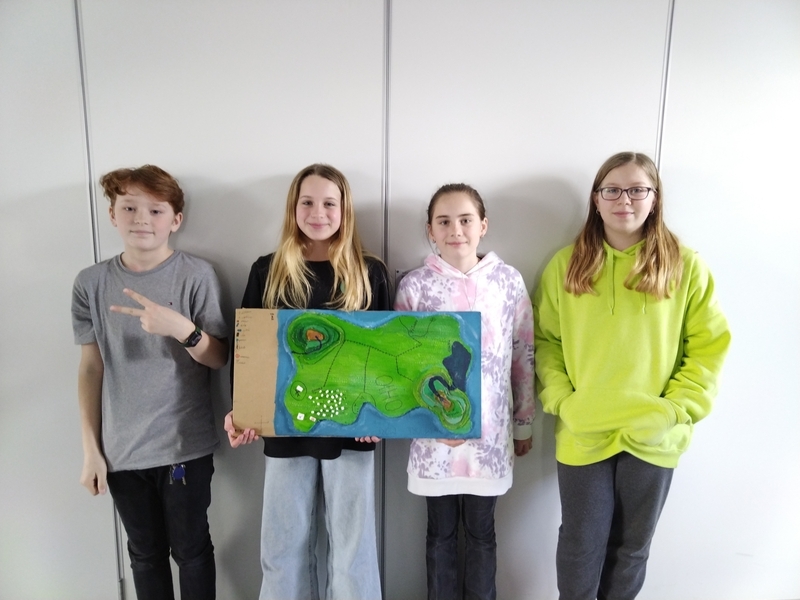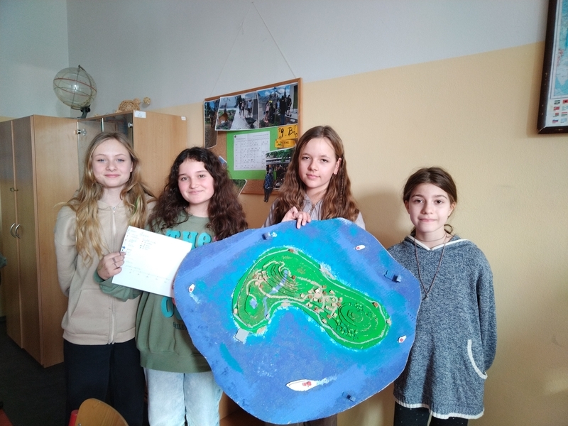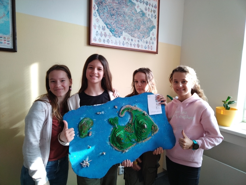 Na začátku ledna obdrželi žáci 6. tříd zadání pro mezipředmětový projekt. Zadání znělo jednoduše: Ve skupinách vytvořte 3D model vymyšleného ostrova. V rámci hodin výtvarné výchovy žáci pracovali na vytvoření ostrova dle požadavků a s dodržením zásad pro tvorbu map. Z kartonu vytvořili jednotlivé vrstvy odpovídající nadmořské výšce. Na ostrově vytvořili řeky, jezera, silnice, obce či turistické trasy. Pro vše vytvořili názvy a kartografické značky, které vysvětlili v legendě jejich ostrova.