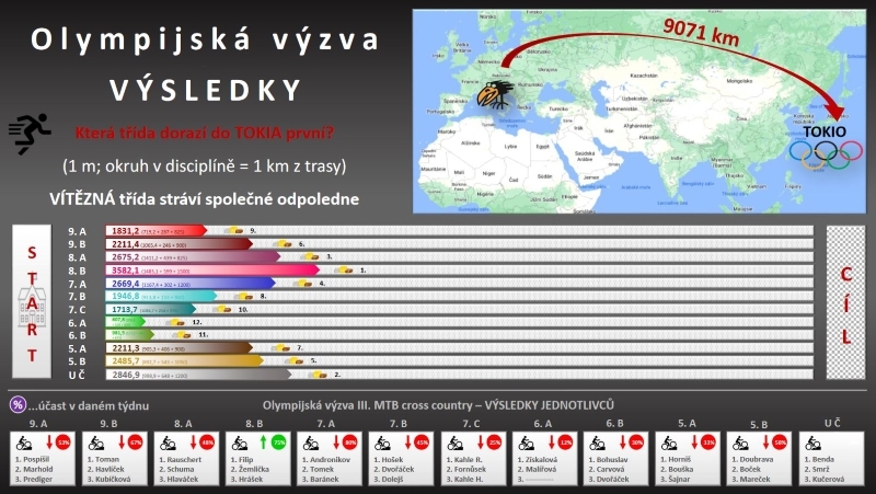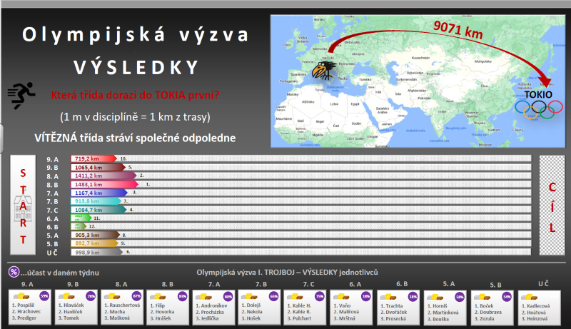 Průběžné výsledky jednotlivých tříd můžete nalézt níže. Tak…. která třída se dostane do Tokia jako první?
