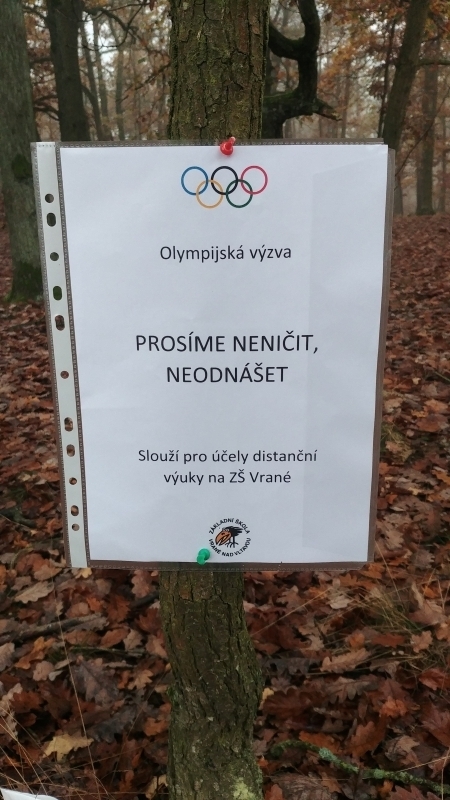 Tento školní rok je v naší škole rokem „olympijským“ a tak jsme se rozhodli během distančního vzdělávání (při tělesné výchově) žáky zaktivizovat k pohybu, „vytáhnout“ je do přírody, zasportovat si, dozvědět se nové informace a užít si legraci. A tak pro žáky od 5. do 9. třídy připravili naši učitelé tělesné výchovy každotýdenní celoškolní hru s názvem Olympijská výzva. Každý týden žáci získávají od vyučujících GPS souřadnice s daným stanovištěm a zadáním výzvy. Po splnění zapisují výsledek do sešitu své třídy (vždy tajně ukryt, žáci dostávají indicie k jeho nalezení) a o víkendu učitelé zpracovávají výsledky a vyhodnocují je v rámci celé školy.