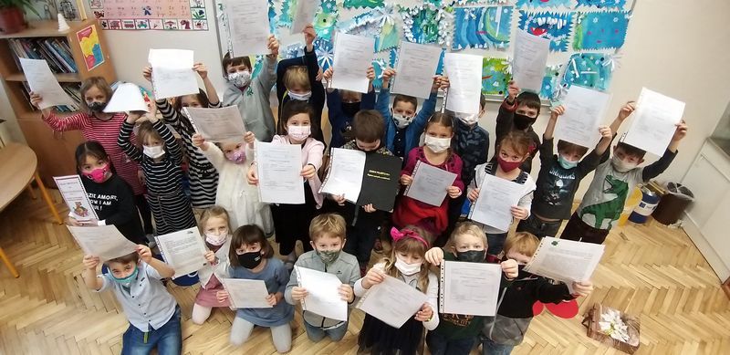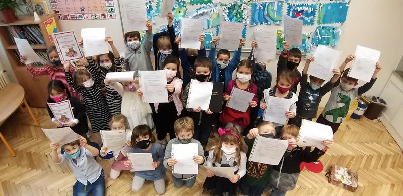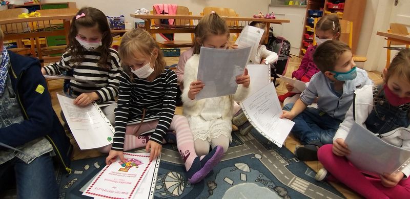 Rády bychom se s Vámi v této nelehké době podělily o to, v jak radostné atmosféře probíhalo předání prvního vysvědčení ve třídách našich prvňáčků. I přes roušky a další omezující hygienická opatření panovala ve třídách vskutku sváteční atmosféra. Děvčata i chlapci přišli do školy ve svátečních šatech a s dobrou náladou. Bylo těžké udržet na uzdě celé tři vyučovací hodiny jejich zvědavost a těšení se na očekávanou chvíli. Na radosti a nadšení nic neubrala ani skutečnost, že děti dostaly „jen“ výpis ze závěrečného vysvědčení. Před předáváním vysvědčení paní učitelka a paní zástupkyně shrnuly nejdůležitější okamžiky školního pokroku dětí, poděkovaly jim za jejich píli a předaly každému prvňáčkovi jeho první vysvědčení. Všechny děti se radovaly ze samých jedniček a zvědavě si prohlížely celé vysvědčení. S velkou pýchou je pak ukládaly do batůžků a těšily se na to, jak se s ním pochlubí rodičům, sourozenců, či prarodičům. Děti z 1. A dostaly od paní učitelky ještě každý svůj osobní dopis, ve kterém byly pochváleny za všechny jejich pokroky. Bylo krásné sledovat jejich rozzářená očka a radost z dosažených úspěchů. Věříme, že nejen my, ale i děti se těší na další pololetí školního roku, na jehož konci dostanou už to opravdové vysvědčení.