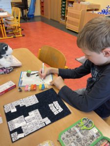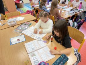 V českém jazyce jsme se za 1. pololetí naučili číst většinu velkých a malých tiskacích písmen technikou hláskování (genetická metoda), čteme slova, věty i kratší texty, někteří už přelouskali několik knih a velmi často a rádi navštěvujeme školní knihovnu. Pracujeme s písmenkovými koberečky, čteme ve čtecích tabulkách, tvoříme dokonce i vlastní knihy a učíme se prezentovat vlastní i skupinovou práci a správně se vyjadřovat. V matematice jsme se seznámili s mnoha matematickými prostředími, ve kterých