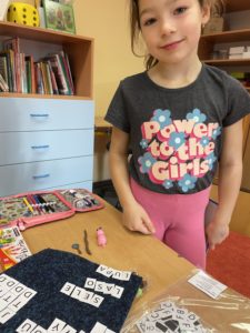 pracujeme a přicházíme jim postupně na kloub. Mezi naše nejoblíbenější patří krokování, práce s dřívky, počítání s neposedy (čísla, která utekla z příkladů), autobus nebo krychlové stavby. Baví nás totiž propojení matematiky s pohybem a manipulací s