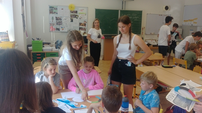 Celoroční školní téma „Olympijské hry“ jsme se snažili zapracovat i do hodin přírodopisu. V osmých třídách se celý letošní školní rok věnujeme savcům a tak jsme se rozhodli pustit se do projektu „Savci pod olympijskými kruhy“. Každý ze žáků si musel vybrat svého rekordmana, nastudovat si o něm co nejvíce informací, seznámit se s jeho rekordem a vypracovat (spočítat, vypátrat,…) „záludnou“ otázku k zamyšlení s přesahem do fyziky, zeměpisu, matematiky. Navíc si žáci sami vytvořili QR kód s odkazem na zajímavosti o daném zástupci. Výsledný „obraz“ musel také splnit formální kritéria- výtvarné zpracování na formát A3 s informacemi o vybraném savci, rekord napsaný do olympijského kruhu v barvě světadílu, ve kterém se živočich vyskytuje. Ze spodu obrazu měla viset medaile s vypracovanou otázkou k zamyšlení, na její druhé straně měl být nalepen QR kód. Výsledek byl u některých žáků opravdu dechveroucí. Někteří více „zápasili“ s výtvarným zpracováním, jiným „zamotala hlavu“ matematicko- fyzikální otázka. Ale všichni se snažili svůj projekt zvládnout, jak nejlépe mohli. V posledních červnových dnech jsme pak navštívili třídu 3.A, ve které po skupinkách osmáci svůj projekt prezentovali. Třeťáci byli bezvadní, hodina vedená staršími spolužáky se jim moc líbila a podle zpětné vazby si z ní i mnoho zajímavostí (rekordů) ze živočišné říše odnesli.