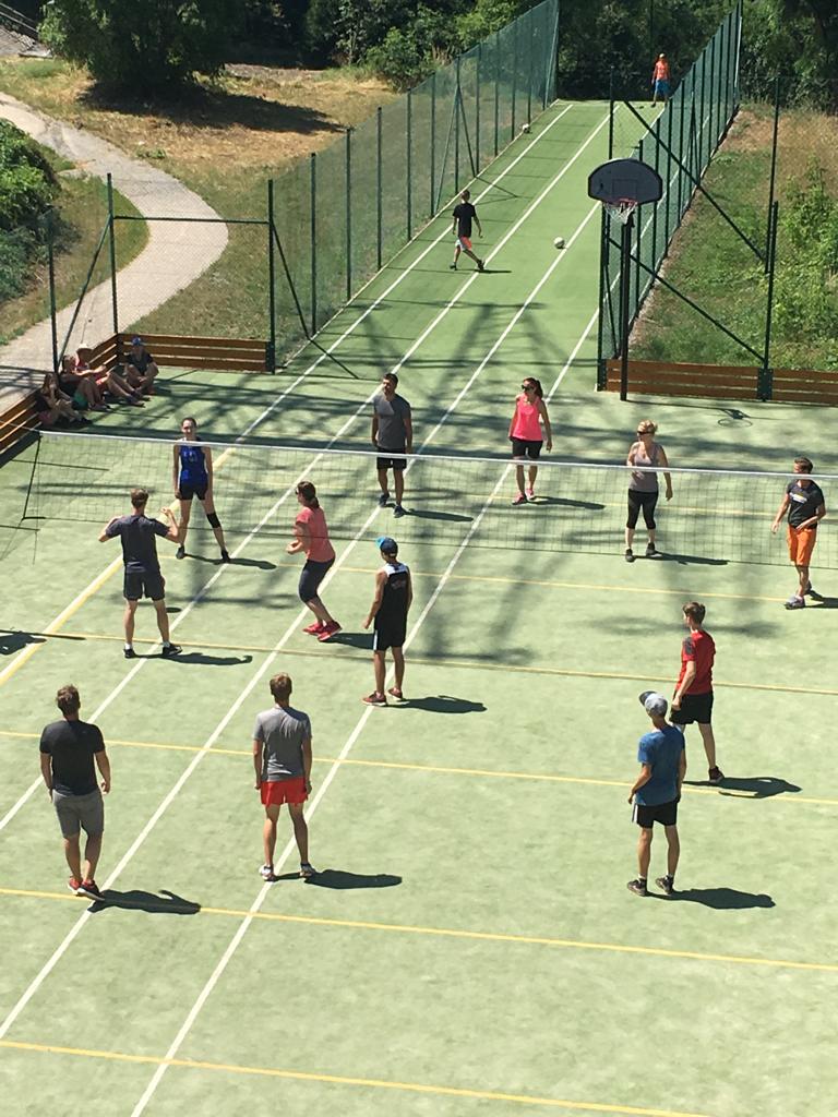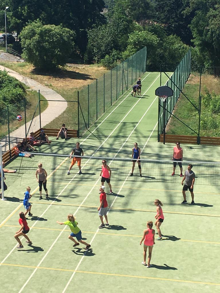 Den před vysvědčením připravila škola pro žáky 2.stupně den plný pohybu a zábavy. Nejprve si žáci paralelních tříd v ročníku změřili síly ve smíšené štafetě (z každé třídy 3 žáci a 3 žákyně), následně se každý z dětí přemístil ke svému sportu- stanovišti, ve kterém se zúčastnil miniturnaje. Soutěžilo se v přehazované, fotbalu, florbalu, stolním tenise a piškvorkách. V úplném závěru proběhl oblíbený zápas ve volejbale žáci versus učitelé. Letos utvořili žáci proti pedagogům dokonce 4 týmy. Z reakcí samotných hráčů i diváků bylo patrné, že se nejen volejbalový zápas, ale celé sportovní dopoledne všem moc líbilo.