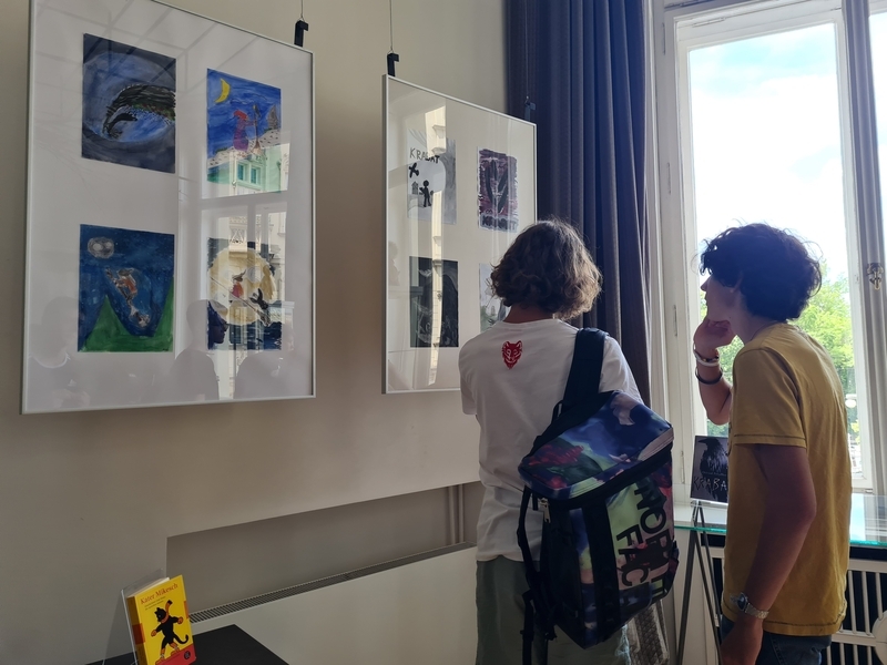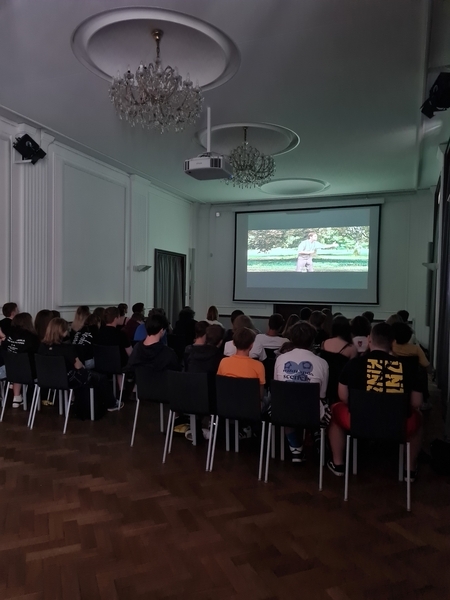 V Goethe Institutu nás čekal „Herr Thomas“, který mluvil pouze německy a tak musely děti dávat dobrý pozor . Dozvěděli jsme se mnoho zajímavých informací nejen o Goethe Institutu v Praze, ale i dalších, celkem 158 pobočkách, v celém světě! Následoval krásný film, který se nám všem velmi líbil – a byl jak jinak než v německém jazyce. Po shlédnutí filmu jsme navštívili knihovnu a studovnu GI. Čas do příjezdu našeho spoje směrem zpět do Vraného jsme využili na krátkou zastávku spojenou s občerstvením a zmrzlinou.