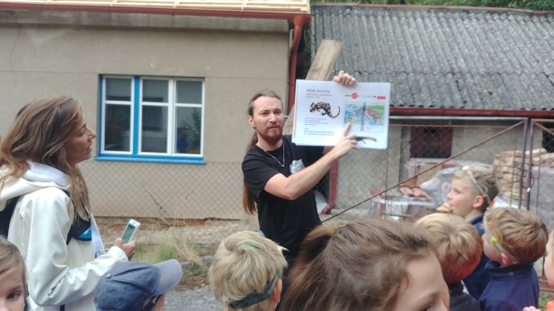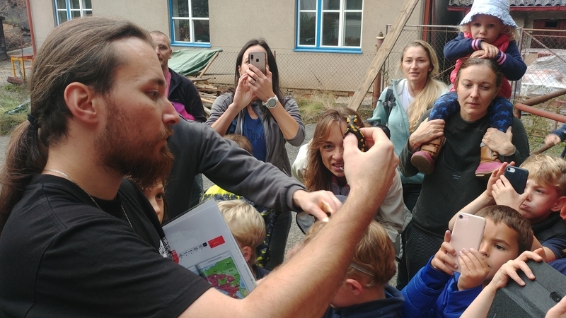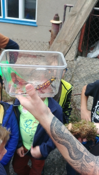 Na Světový den zvířat, v pondělí 4. 10. 2021, ZŠ Vrané nad Vltavou a její Ekotým uspořádali pro rodiče, žáky i širokou veřejnost vycházku za mloky skvrnitými (Salamandra salamandra) do nedalekého údolíčka ve Skochovicích. Vycházky se zúčastnila poměrně početná skupina složená především z mladších žáků a rodičů. Teplé a suché odpoledne se hodilo spíše k procházce, než k pozorování mloků, ale i přesto se nám jednoho podařilo nalézt a to hned po příchodu na místo. Kromě obdivování krásně zbarveného samce mloka, proběhla i krátká přednáška o rozšíření, biologii a ekologii těchto zajímavých tvorů.